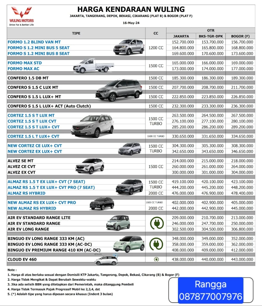 Miliki mobil Wuling dengan mudah dan cepat. Kunjungi atau hubungi RANGGA (Senior Sales Executive) 0878 7700 7976 sekarang juga. Nikmati berbagai keuntungan seperti DP ringan, angsuran fleksibel, dan layanan purna jual yang memuaskan.